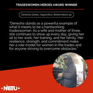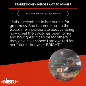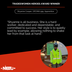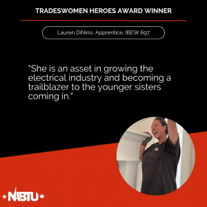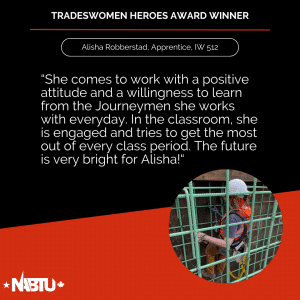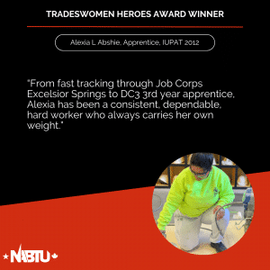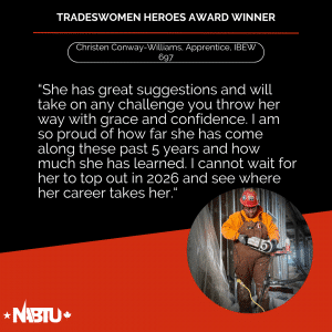 The Tradeswomen Heroes Award is a joint effort between NABTU’s Tradeswomen’s Committee and Apprenticeship and Training Committee to highlight the tremendous women workers within our affiliate unions. This award recognizes four outstanding tradeswomen per month – two apprentices and two journeyworkers – nominated by local, state, and international leadership.